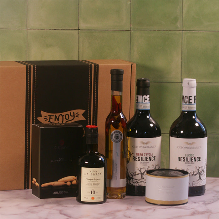 This drinks box combines characterful Sicilian wines with artisanal delicacies from Southern Europe.